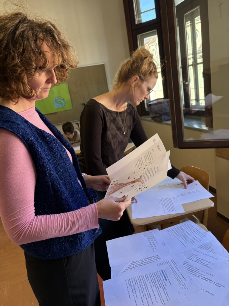Die geschriebenen Texte wurden gemeinsam mit Theaterpädagogin Brigitte Moscon in einer Szenischen Lesung erarbeitet. Unterstützt wurden sie dabei von der Musiklehrerin Alexandra Haller und einzelnen Schüler:innen der 3. Klassen der Musikrichtung, die die Lesung musikalisch umrahmten. Eindrucksvoll präsentierten die 12 Schüler:innen auf der Studiobühne des Stadttheaters Bozen mit Freude ihre Texte. Anwesend war auch der Autor des Romans Sepp Mall, der von den Texten begeistert war und im Anschluss ein spannendes und vielseitiges Gespräch mit allen 3. Klassen führte. Dabei erzählte er von der Entstehung des Romans und beantwortete Fragen rund um das Schreiben. Eine Autorenbegegnung der besonderen Art!