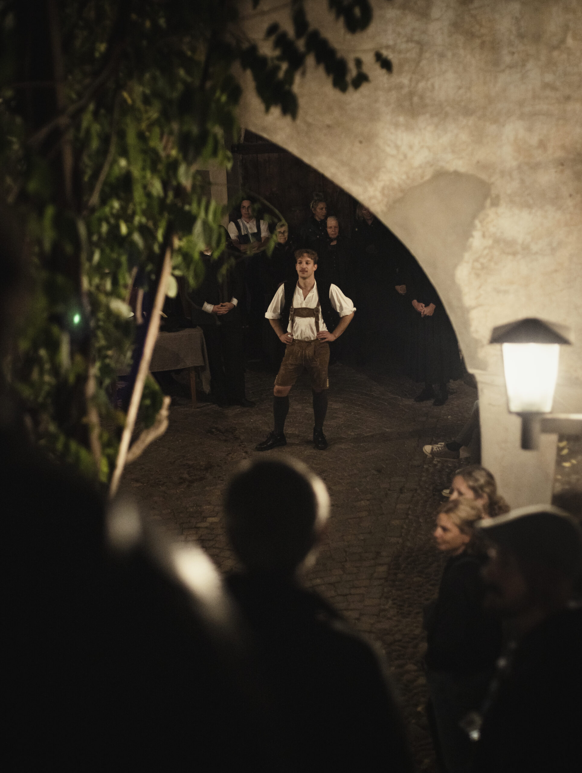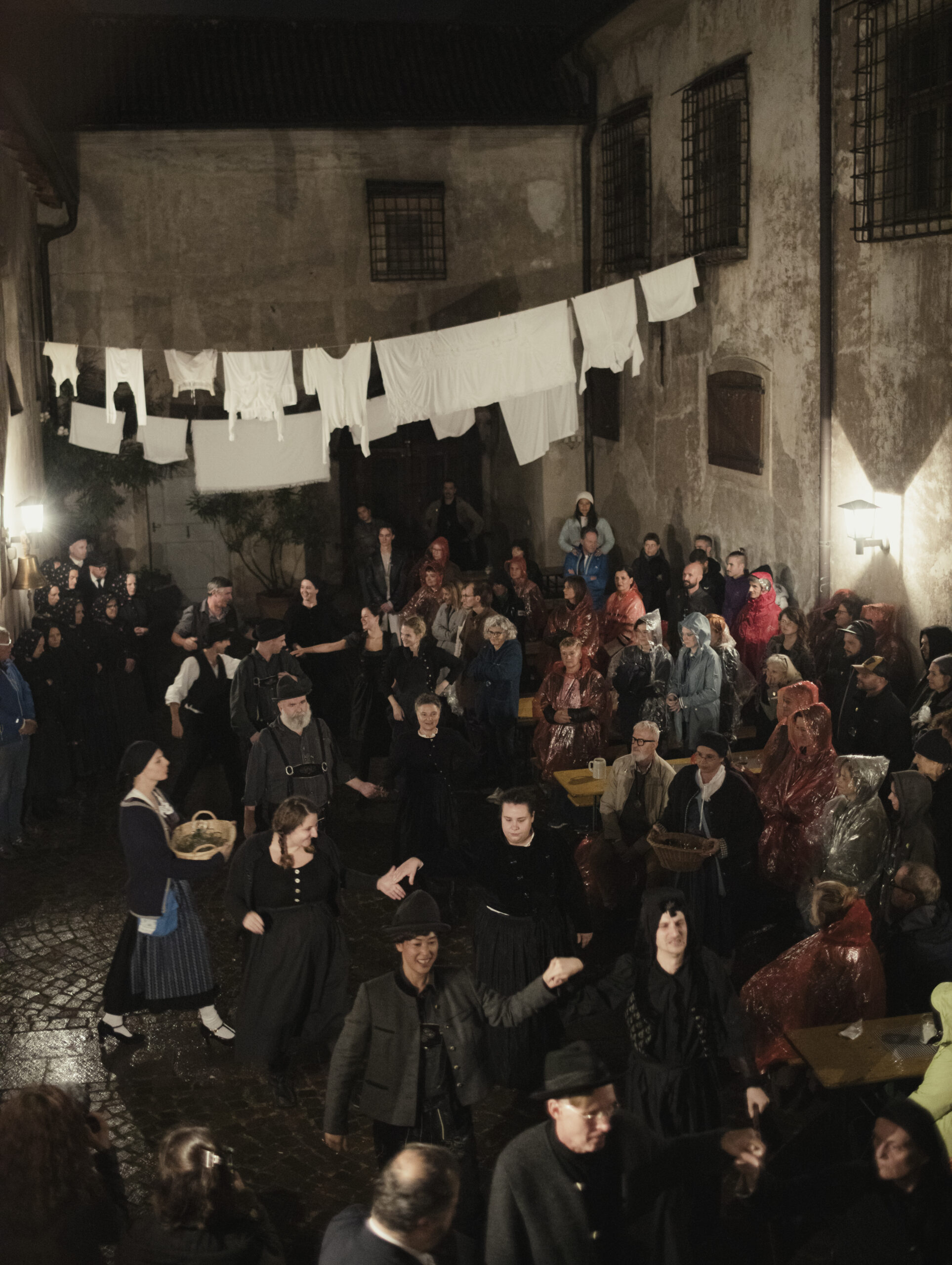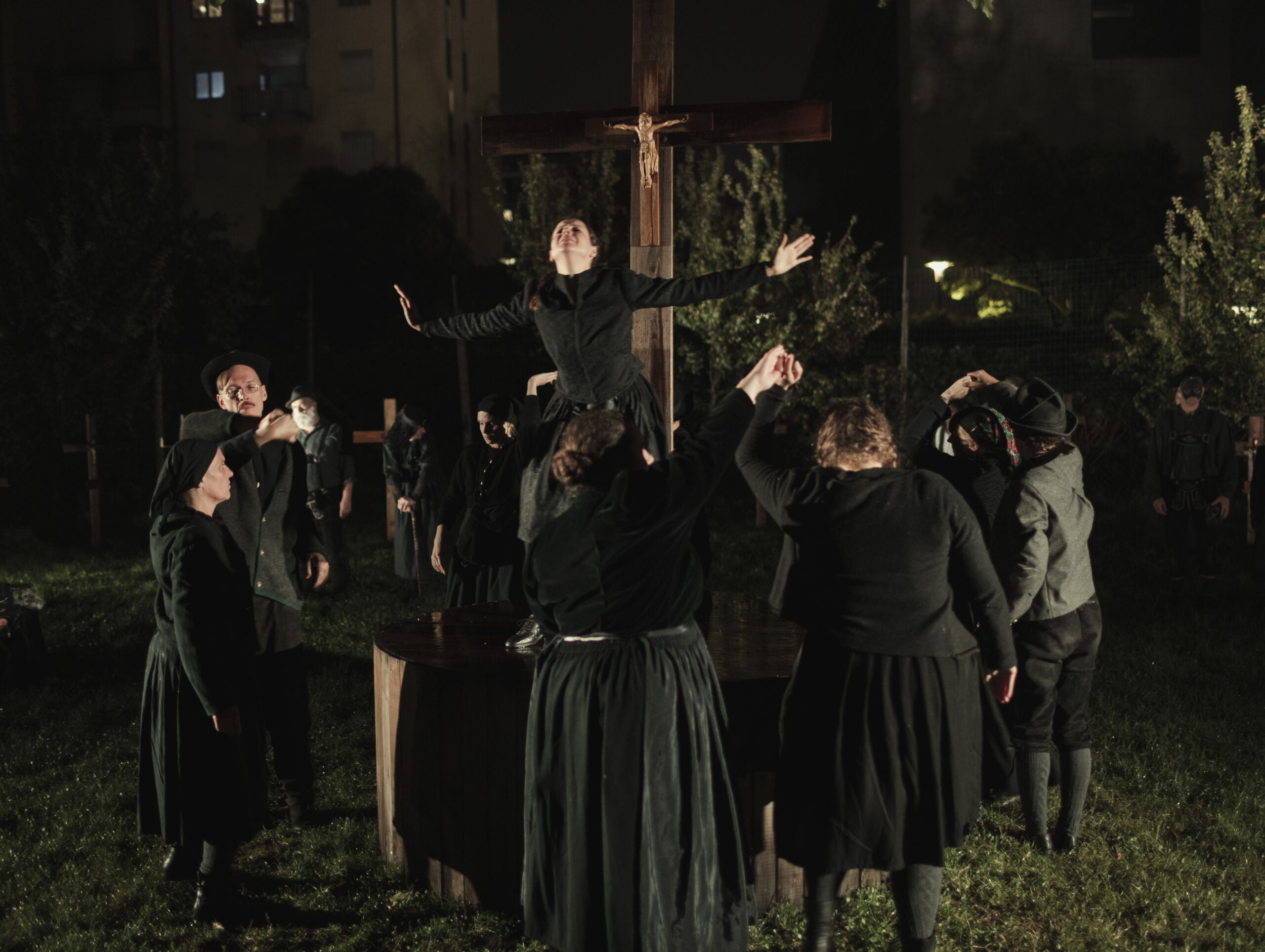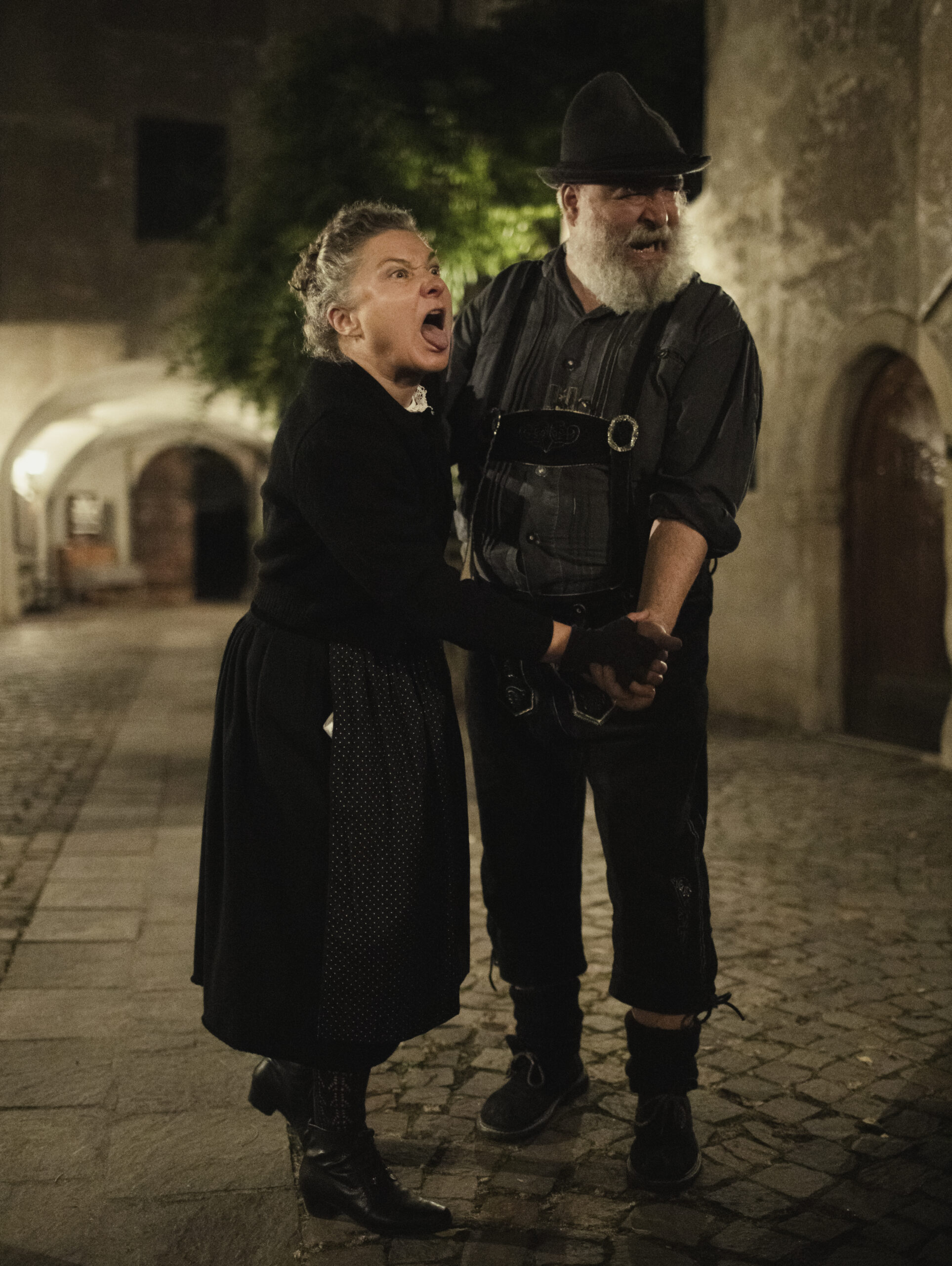 Das immersive Theaterensemble Nesterval versteht sich als queeres Volkstheater. Im Zentrum jeder Inszenierung steht die Lust am Spiel, das Schaffen eines theatralen Erlebnisraums und das Einbezogensein des Publikums in die Performance. „Die 7 Tage von Mariahaim“ ist eine für die Vereinigten Bühnen Bozen und Transart Festival adaptierte Version des Stücks „Das Dorf“, das 2019 für den Nestroy-Preis nominiert wurde. Die Besucher:innen begeben sich auf die Suche nach der Magie des Sehnsuchtsorts Heimat und ergründen große Fragen nach Fremde, Gewalt, Liebe und Schuld. Geschlechterrollen und Rollenbilder werden durchmischt und der Heimatbegriff wird für eine pluralistische Gesellschaft geöffnet.