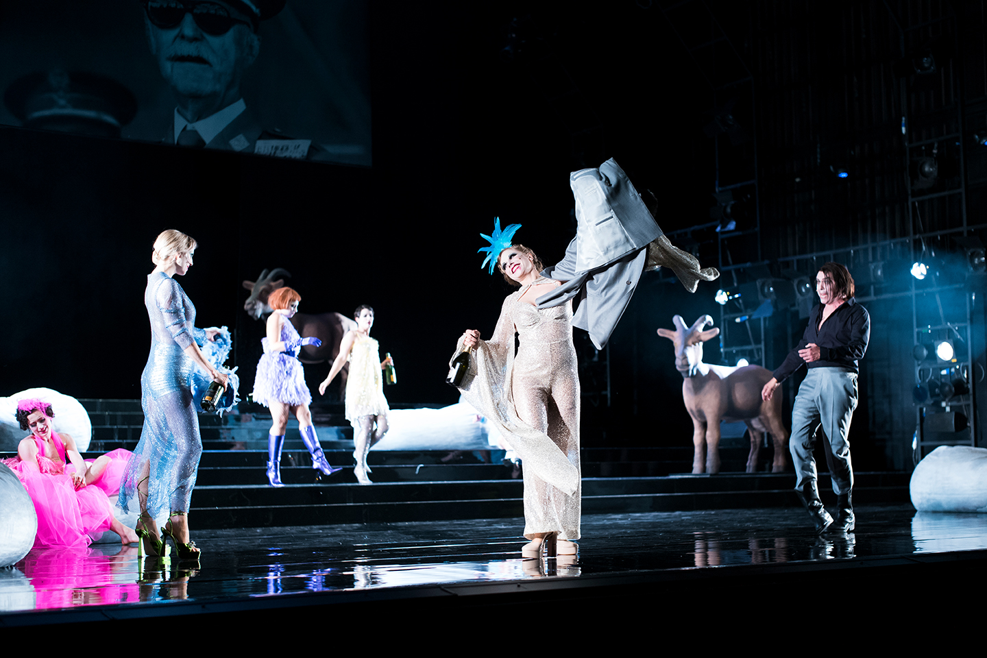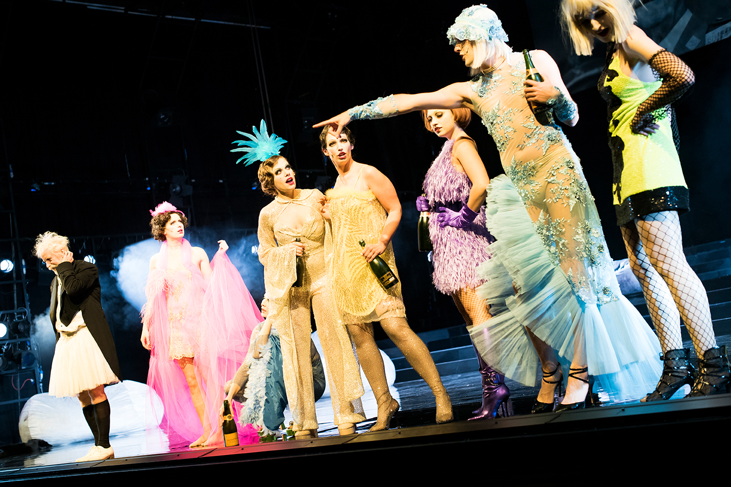 Bei einem großen Ball der pontevedrinischen Gesandtschaft in Paris warten alle auf die reiche, frisch verwitwete Hanna Glawari. Eine Heirat mit einem Landsmann wäre die Rettung für den bankrotten Kleinstaat Pontevedro. Ein verstecktes Spiel um Treue und Untreue beginnt. Während die Gastgeberin Valencienne ihren Verehrer Camille mit der reichen Witwe verkuppeln will, setzt ihr Mann Baron Zeta auf den Lebemann Danilo Danilowitsch. Als Danilo aber in der gewitzten Hanna jene Frau wiedererkennt, die er vor ihrer Ehe liebte, aber aus Standesgründen nicht heiraten durfte, macht er einen Rückzieher. Am Ende der Nacht gibt es finanzielle Gewinner und emotionale Verlierer und ein unkonventionelles Paar, das Grenzen überschreitet.