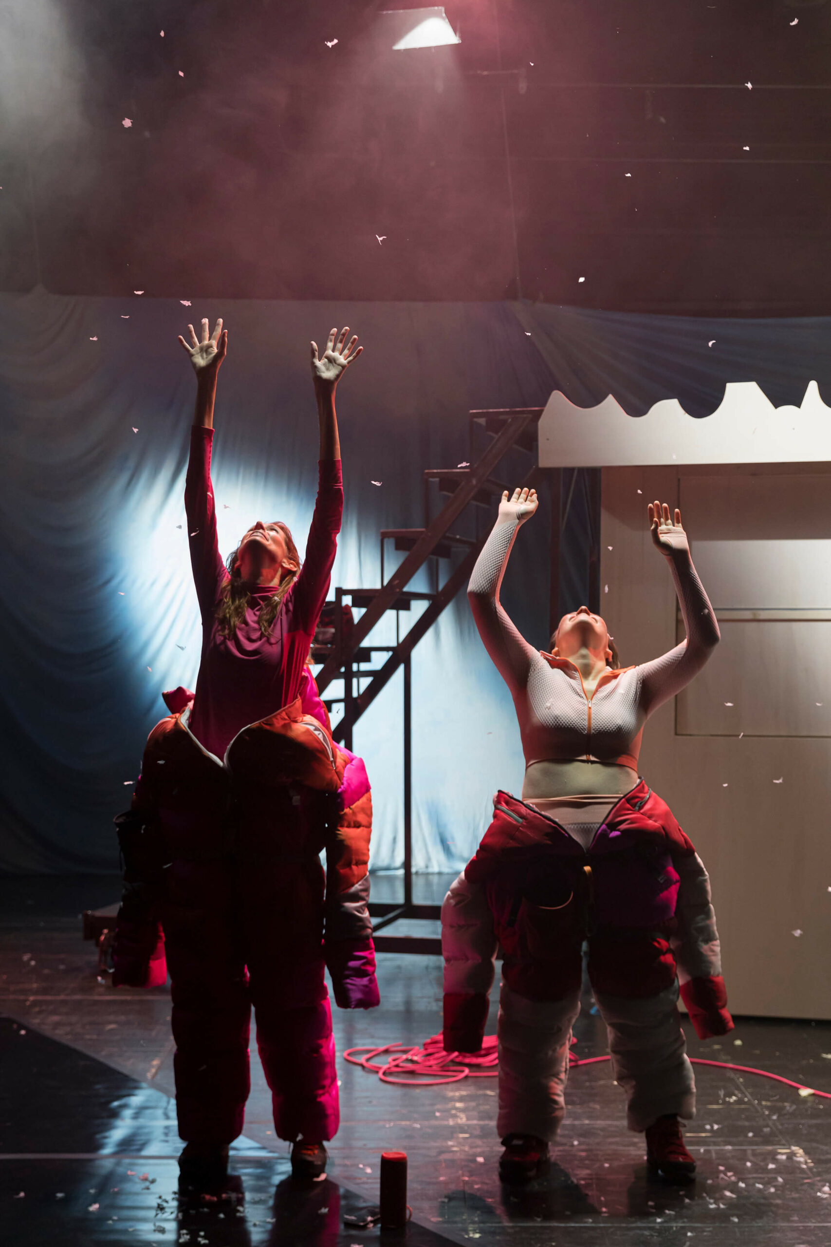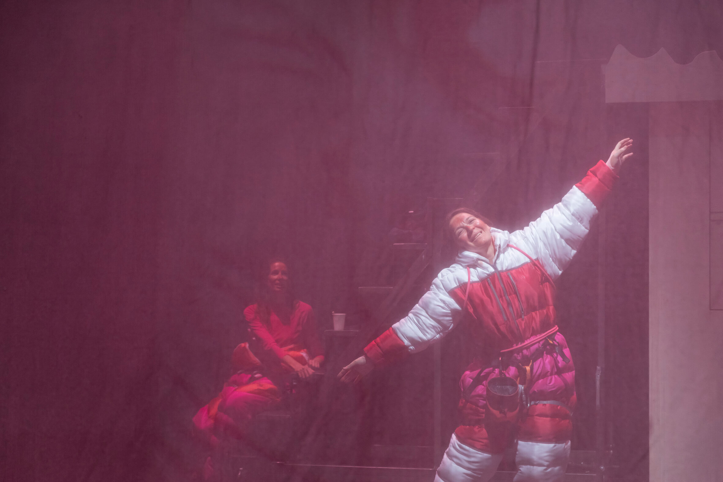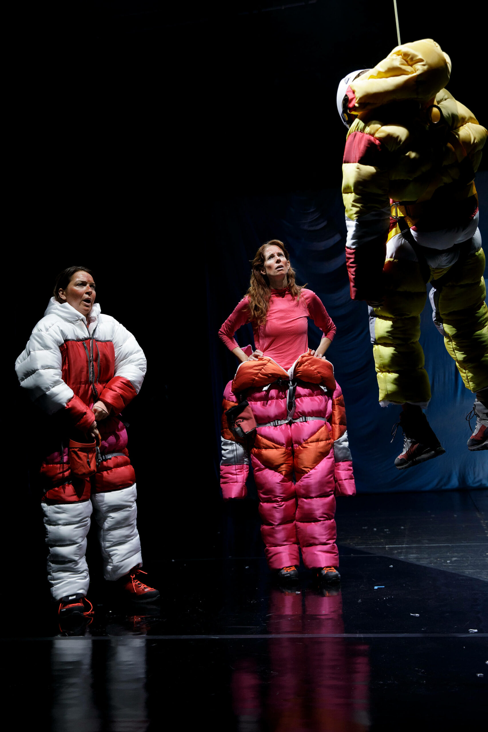 Die preisgekrönte österreichische Dramatikerin Teresa Dopler entwickelt in ihrem aktuellen Stück ein gleichermaßen erschreckendes wie komisches Zukunftsszenario zwischen romantischer Schönheit und globaler Zerstörung: „Für mich ist diese Bergwelt vor allem eine fiktive Welt, ein geschlossenes Universum und im Grunde auch ein sehr absurder Schauplatz. Die Pfade, Gipfel und Täler gibt es zwar alle wirklich, aber die Distanzen und die Dimensionen sind seltsam verschoben. Auch die Figuren sind ja keine herkömmlichen Bergsteiger:innen. Sie sind in den Bergen unterwegs, seit sie sich erinnern können, und ich habe fast den Eindruck, dass man es hier mit einer eigenen Spezies zu tun hat, als wären sie irgendwann einmal aus einer Felsspalte gekrochen.“